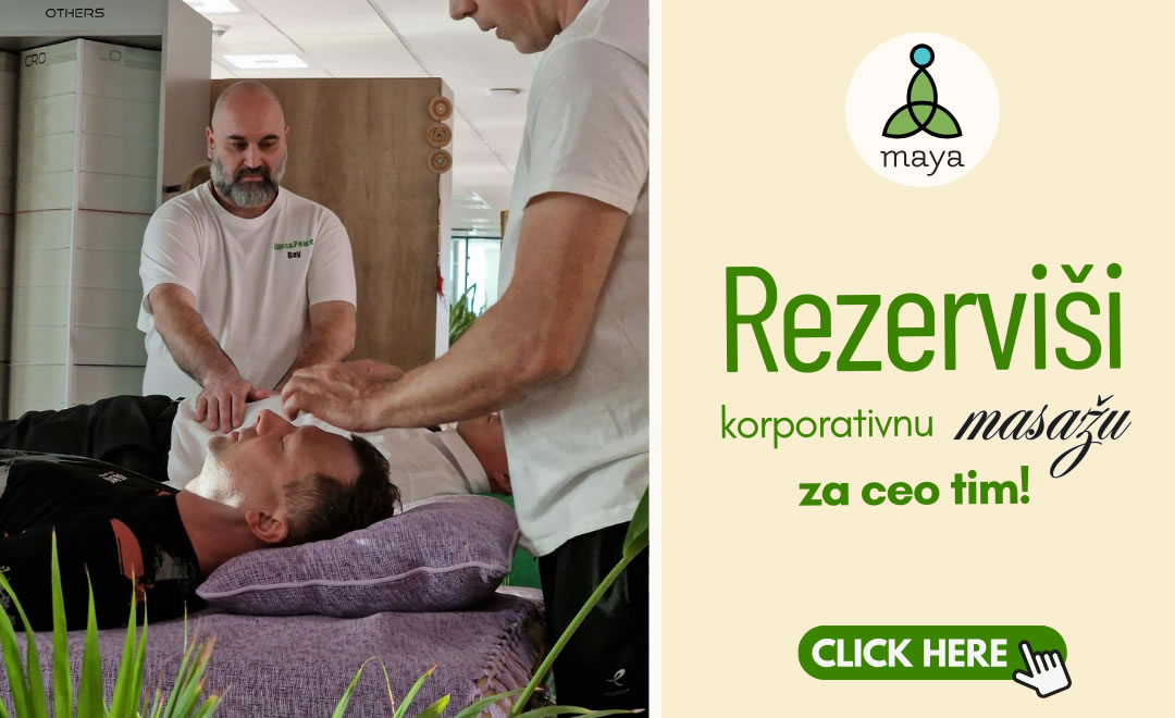Poboljšajte performanse tima uz Bliss and Peace Day (četvorosatna korporativna masaža za vaš ceo tim), Office Yoga (trideseto minutne vežbe Joga na stolici). Pobedite stres, anksioznost i bol u leđima. Ojačajte energiju, fokus i efikasnost na radnom mestu.
