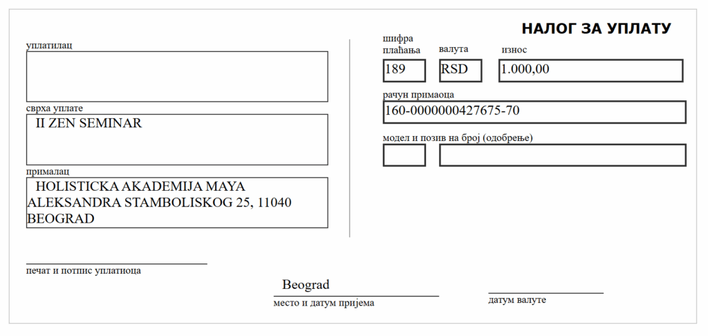 🔸 Svrha uplate: „II Zen Seminar – ulaznice“